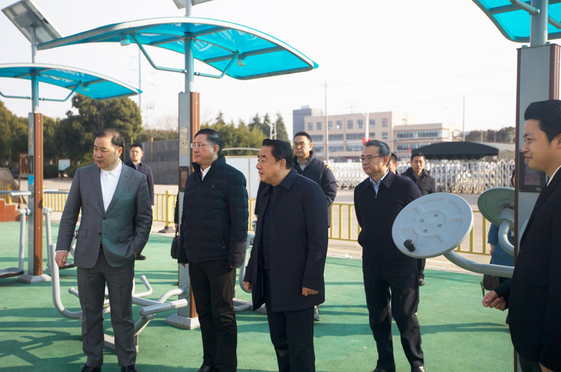 On February 16, Chen Zhenning, chairman of Jiangsu Province Development Sports Foundation (former Deputy Director of the Standing Committee of the Provincial People's Congress and deputy secretary of the Party Group), accompanied by Feng Qibu, deputy director of the Standing Committee of the Municipal People's Congress and Deputy secretary of the Party Group, and Jing Fei, director of the Sports Bureau of Xuzhou City, visited Jiangsu QIUSU Sports Technology Co., LTD., to investigate and guide the work.